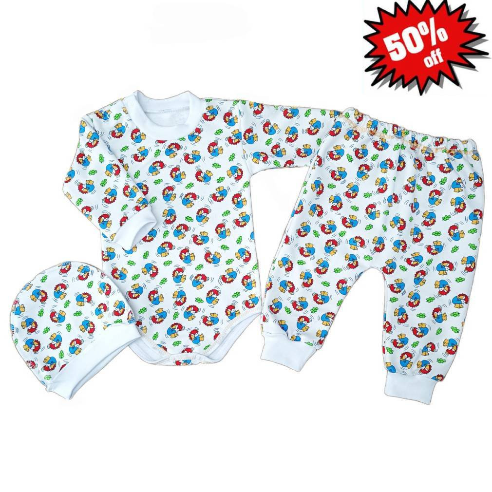 Комплект ясельний (боді з довгим рукавом+штани+шапочка) "Їжачки"